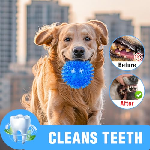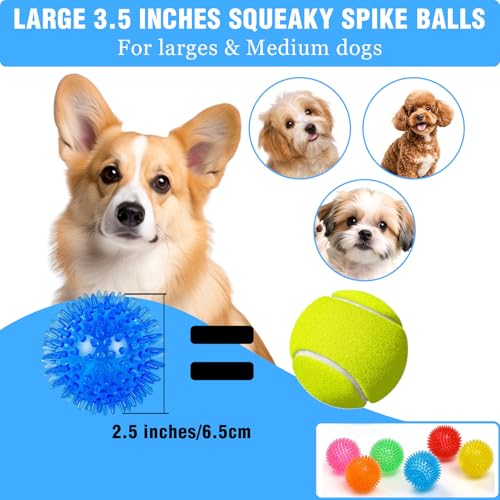 Made from non-toxic pet-safe TPR rubber, the balls are soft, odourless and suitable for gentle chewing. A spiky surface improves grip and helps prevent rolling under furniture while providing light teeth cleaning and gum massage during play. Each ball contains a built-in squeaker to attract attention and they float for supervised water play in yards, pools or at the beach.