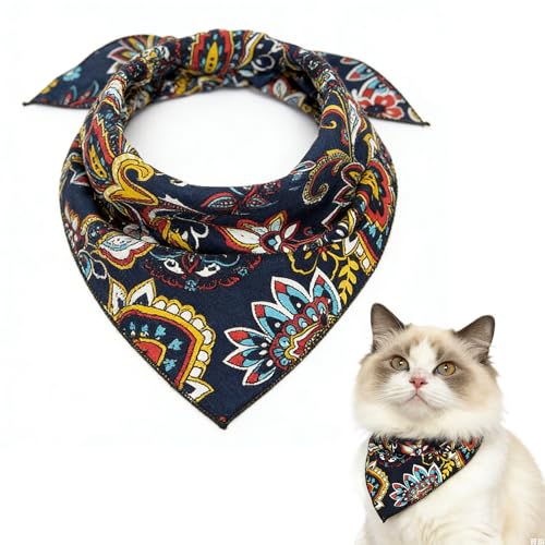Made from breathable cotton fabric, the bandana is comfortable for regular wear and simple to wash. The adjustable triangle shape can be folded to fit small dogs or worn unfolded by medium and large dogs, and it is also suitable for cats when a smaller fit is needed. Its vintage denim floral print gives a distinctive look for celebrations and everyday outings.