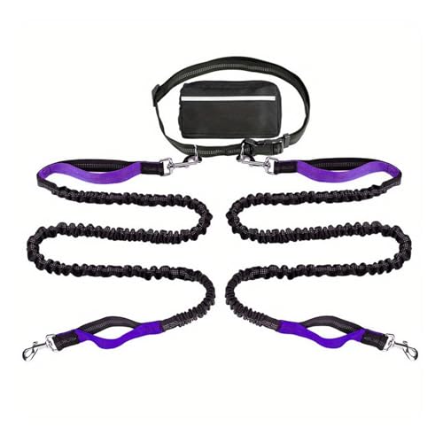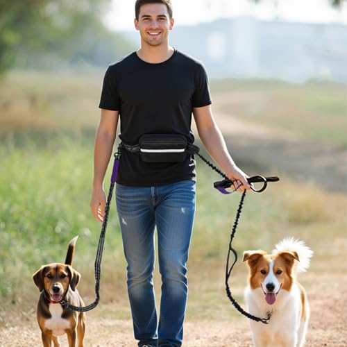 The lead pairs shock-absorbing bungees with extra handles for moments that need direct control. An adjustable waist belt lets you find a secure, comfortable fit and the leash lengths stretch as your dogs move, reducing sudden jolts. A detachable pouch holds essentials so your pockets stay clear and reflective stitching boosts visibility on low-light walks.