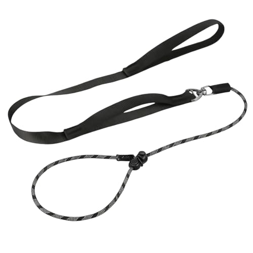 Built from rock-climbing grade nylon, the rope is lightweight yet strong and resists breaking under pressure. A 360-degree alloy swivel ring helps prevent tangles and the handle includes a sponge lining with a soft cotton cover for a comfortable grip during longer walks. Two limit beads let you set the neck loop to a secure size that avoids over-tightening, and the rope thickness plus an overall length of about 1.7 metres gives a balance of freedom and close control. Use this slip lead for focused training sessions, quick walks or vet visits; it is suitable for dogs around 2-27 kg (5-60 lb). For dogs with known neck issues or chronic heavy pulling, consider a harness for long-term daily use instead.