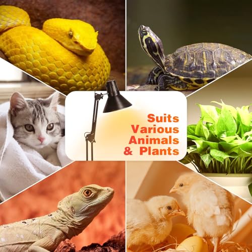 Yes. The adjustable stand and E26/E27 ceramic socket support heat, UVB or infrared bulbs up to 250W, making it suitable for tortoises and many terrarium reptiles.