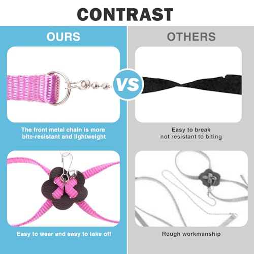 The harness uses an adjustment buckle and a simple adhesive fastener so it can be put on and taken off quickly, while an alloy button secures the leash to the vest for better control during supervised outings. A small bell is included to help you locate a curious pet, though some animals may find the sound unsettling. For best results, fit the harness snugly but not tight, watch for chewing of the nylon, and use in quiet, safe areas rather than busy or high-traffic environments.