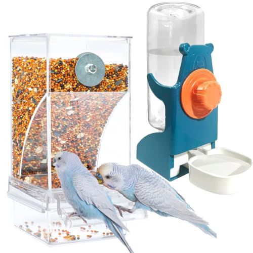 The set is made from thick transparent plastic with a 500g food capacity and a gravity automatic feeding design that feeds as your birds eat. A removable trough under the feeder collects hulls and uneaten seed, helping to keep the cage and room cleaner and making emptying straightforward. The waterer refills automatically from the tank as levels fall, and both units can be mounted inside or outside the cage using the supplied screws. Measure your cage before buying to ensure a good fit. Suitable for a range of small and medium birds named by the manufacturer, this setup is useful for busy owners or short trips when you need reliable, low-contact feeding and watering.