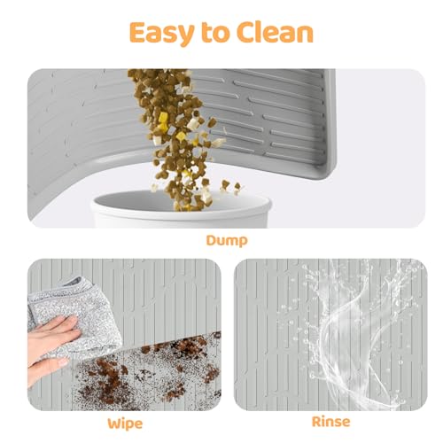 The high raised edge leakproof design helps prevent food and water from spilling off the mat, helping keep floors clean.
