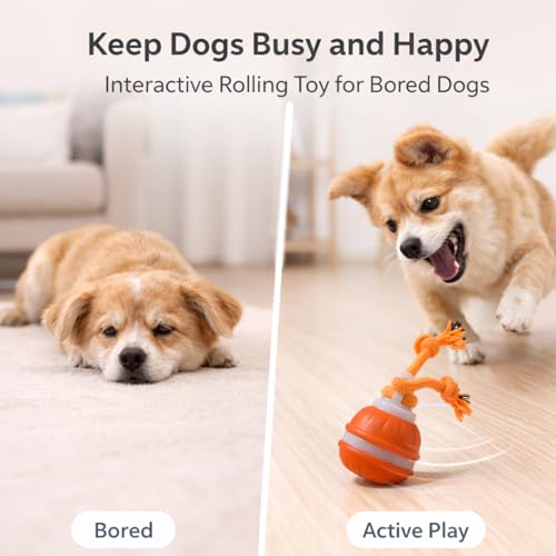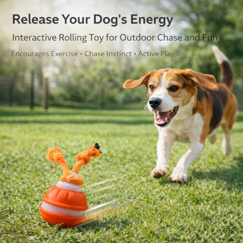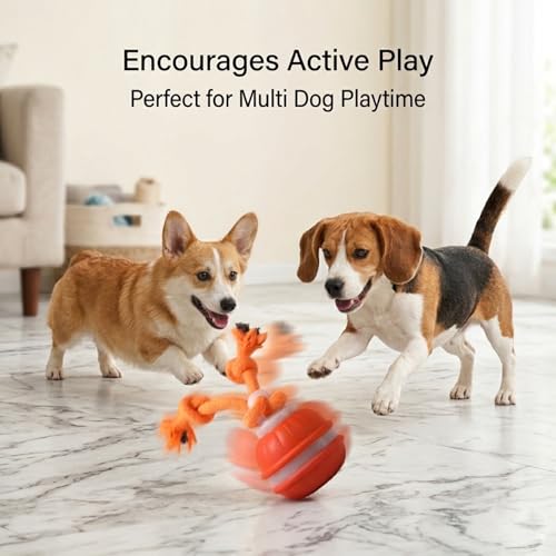 This interactive dog toy combines a self-rolling ball with durable rope knots to encourage chasing, tugging, chewing and batting. As an interactive dog toy it uses unpredictable movement and a built-in bird chirping sound to stimulate natural play instincts and keep your dog engaged during indoor play.