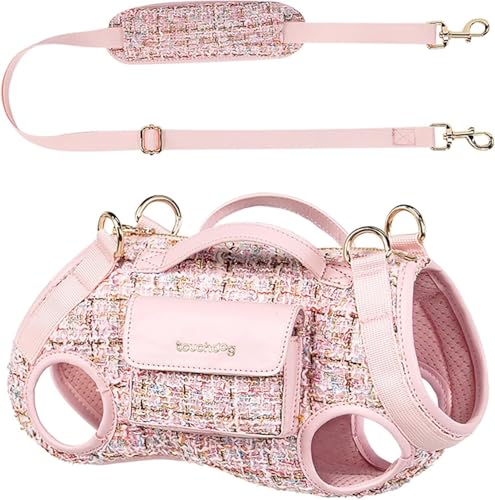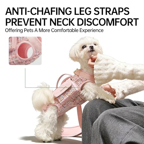 Dog lift harness and carrier for small dogs, ideal for comfortable transport up to 7kg. Its ergonomic horizontal design reduces spinal pressure and the breathable, scratch resistant build converts into a shoulder or crossbody bag with a magnetic pocket for essentials.