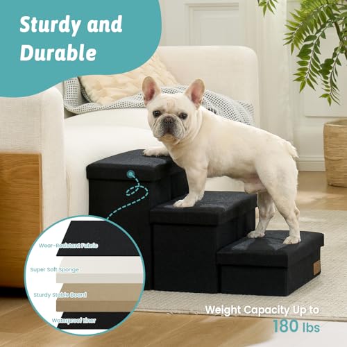 The construction combines wear-resistant fabric, foam padding and engineered board to give cushioned steps and a stable frame that resists wobble. A non-slip base improves grip on floors, while the leakproof cover makes spills and grooming messes easier to wipe clean. Each step doubles as a separate storage compartment, so you can keep blankets, toys or dog clothes close to the sofa without extra shelving.
