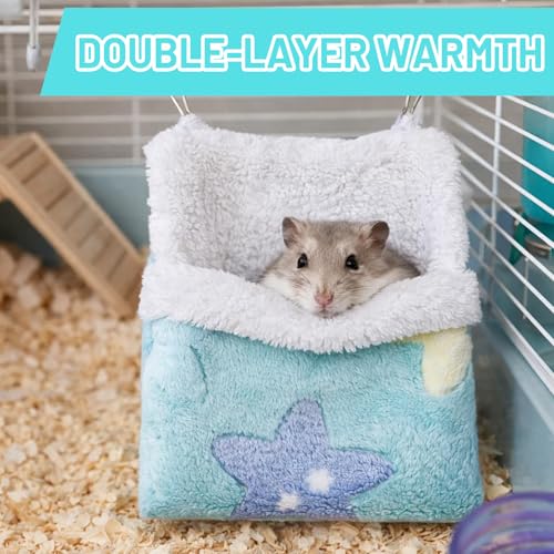 This two-pack includes one blue and one pink double-layer plush hammock, ideal for owners of multiple small pets or to add varied resting spots inside a single enclosure.