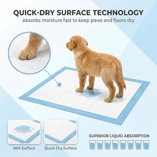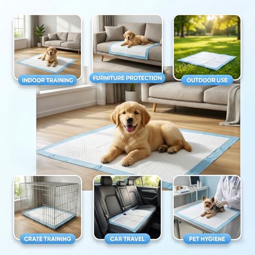 These puppy training pads are absorbent dog training pads designed for house training, incontinence and indoor pee protection. Supplied as a pack of 100 large pads, they provide a hygienic, disposable surface for puppies as well as adult or senior dogs that need extra indoor protection. They are a practical option for routine potty training and for managing accidents with quick, low-effort clean-up.