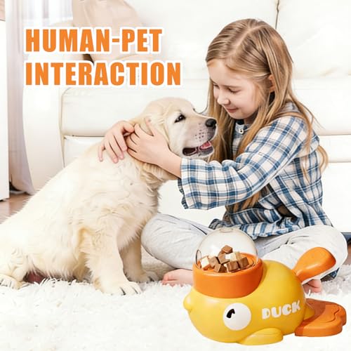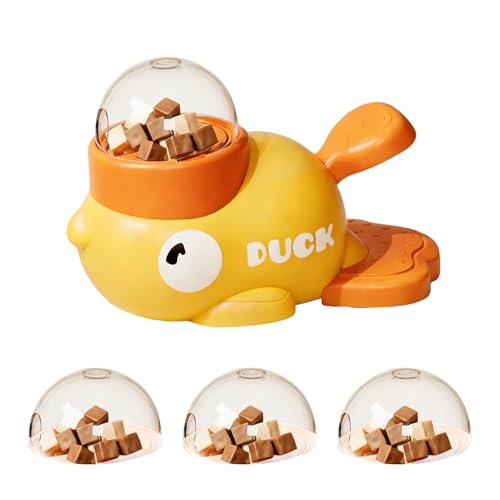 This duck-shaped interactive treat toy is a slow feeder and dispenser for dogs and cats, using a press-to-feed mechanism to engage pets during mealtimes. It encourages mental stimulation, slows eating and reduces boredom or anxiety.