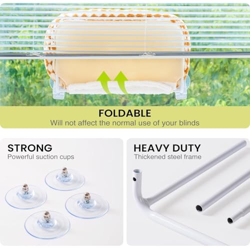 The hammock uses a thick, removable cover and fluffy filling to give visible support and cosy warmth while your cat rests. A reinforced metal frame keeps the perch stable and resists tilting or deformation, supporting cats up to 18 kg so it can accommodate heavier or larger cats with confidence. The foldable design and quick 5 minute assembly mean it is space-efficient and easy to fit without disturbing curtains or blinds.