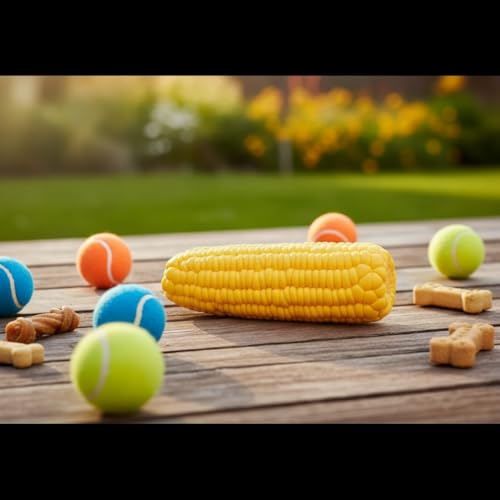 Corn-shaped squeaky latex chew toy for puppies and dogs, designed to stimulate play and satisfy chewing needs. Durable material helps reduce boredom and supports dental health during interactive play.