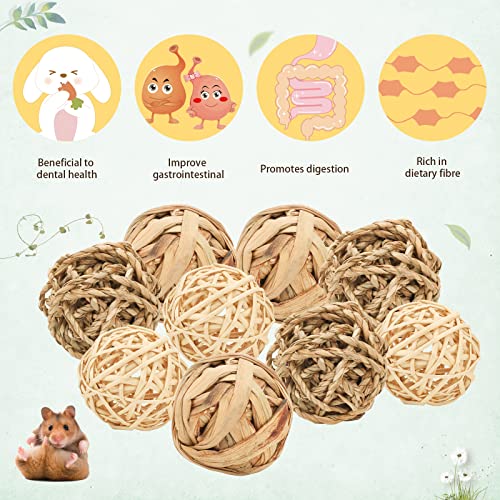 Natural grass chewing balls for rabbits, guinea pigs and hamsters, sold as a 12-piece set. Handmade from grass and rattan, they provide chewing enrichment to clean teeth, massage gums and reduce boredom.