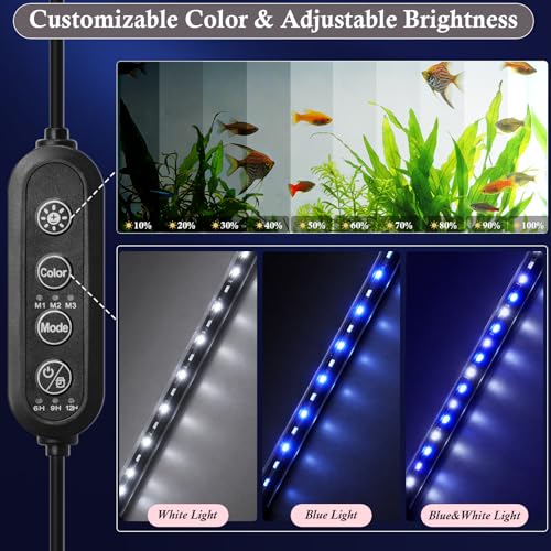 Looking for an aquarium light that automates day-night cycles for a 40-55 cm tank? This submersible LED fish tank light provides a 24/7 automatic cycling mode with a built-in timer to simulate sunrise and sunset, so you get consistent lighting without daily manual adjustments. It is suitable for freshwater and saltwater displays and can support setups that include aquatic plants.