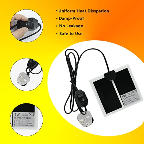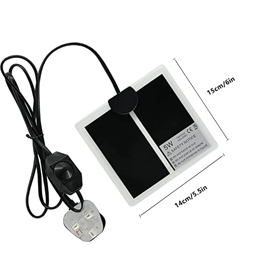 This model is 5W and measures 6 x 5.5 inches, suitable for providing localised belly heat in small enclosures. Price shown is 12.98 GBP.