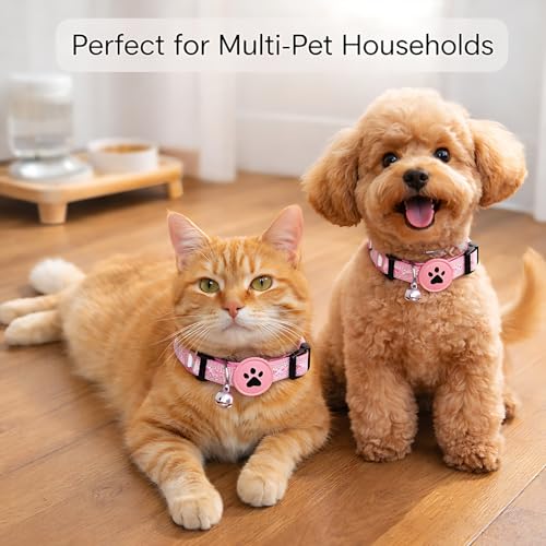 The collar features a breakaway clasp for quick release in emergencies and reflective strips for enhanced night visibility, helping reduce the risk of accidents after dark.