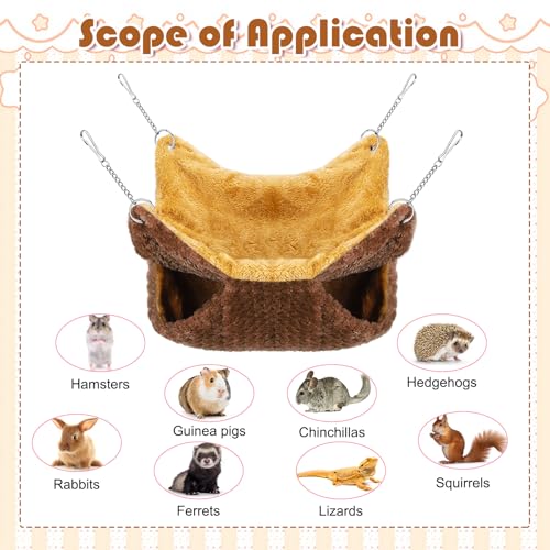 Each double-layer hammock measures 13.4 × 13.4 inch (34 × 34 cm), suitable for small cages and provides compact top and bottom spaces for tiny pets to play or rest.