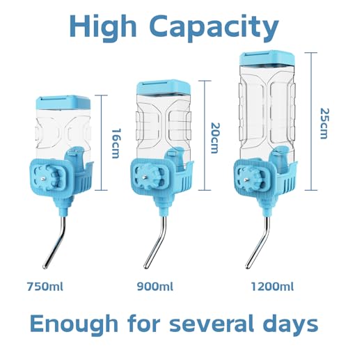750ml hanging water bottle for small animals such as rabbits, guinea pigs, chinchillas and ferrets; food-grade stainless steel ball and silicone seal provide leakage protection and allow easy refilling to keep water clean.