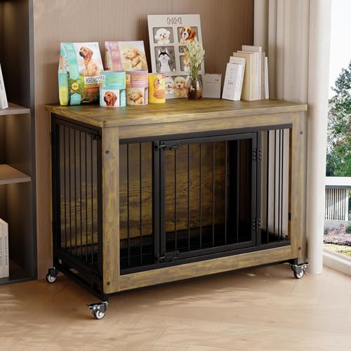- Indoor dog crate that doubles as functional furniture for small to medium dogs