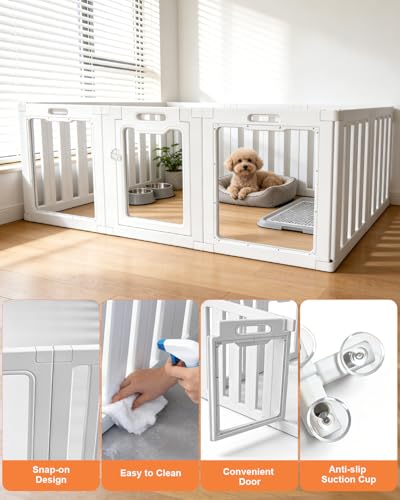 This indoor dog playpen provides a secure, visible space for small dogs and puppies to play or rest indoors. Transparent acrylic panels keep sightlines open so your dog can see its surroundings, which helps reduce stress and makes the enclosure feel less confining while still keeping them safely contained when you cannot supervise.