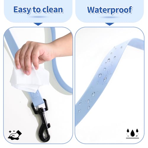 The lead combines a waterproof outer layer with a strong nylon inner webbing for durability and easy cleaning after wet or muddy outings. A zinc alloy buckle that rotates 360 degrees helps prevent tangles, while a padded handle improves comfort for the handler. A D-ring provides a place to clip a waste bag or small accessory. Suitable for small, medium and large dogs, it works well for everyday walks, training sessions, camping and water activities.