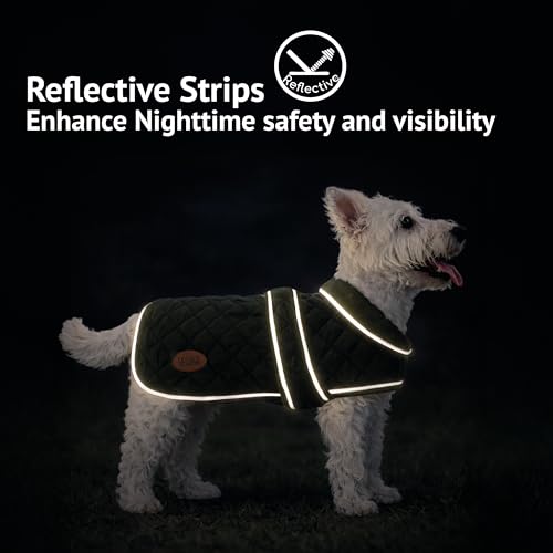 The coat features reflective material to improve visibility during early morning or winter walks, helping you spot your dog in low light.