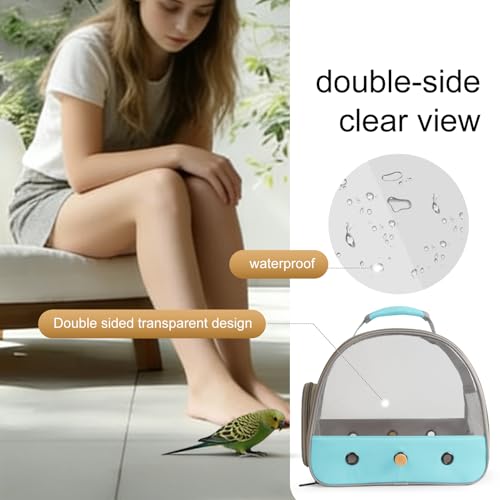 A compact bird carrier designed for safe, visible travel and short trips to the vet or on walks. This travel cage uses transparent TPU windows on both sides so your bird can see outside while still being protected, and carries by a top handle or an adjustable shoulder strap for hands-free transport.