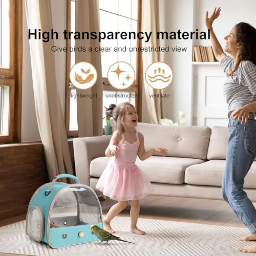 Compact travel carrier for small birds such as parrot, parakeet and budgie, also suitable for small reptiles and small animals. Transparent TPU window, carry handle and adjustable strap provide comfortable, secure transport with included soft mat and wooden perch.