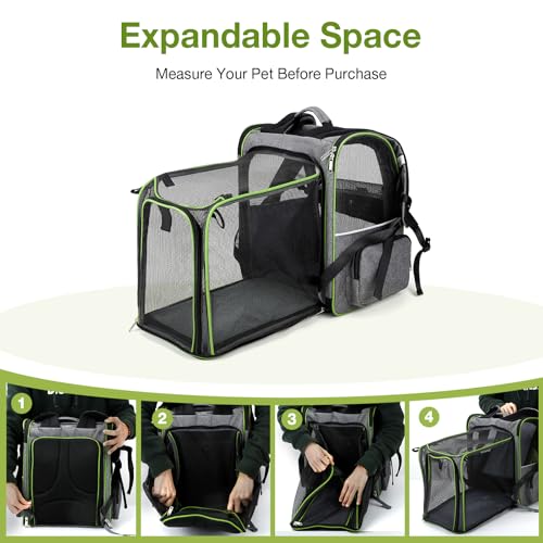 Lekesky large expandable carrier backpack for cats and small dogs offers convenient transport for pets up to 25 lbs. The green, size L design supports comfortable travel and safe, hands-free carrying for vet visits or short trips.