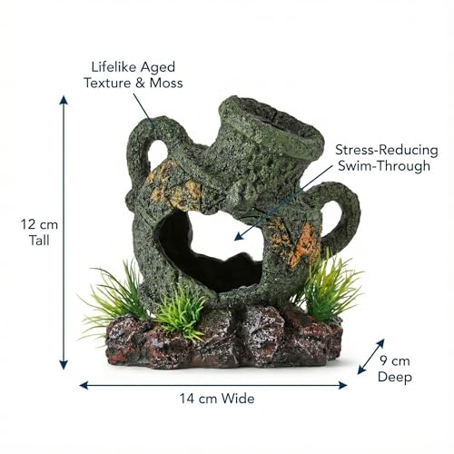 - Realistic ancient amphora design that creates a ruins-style focal point in small and nano tanks