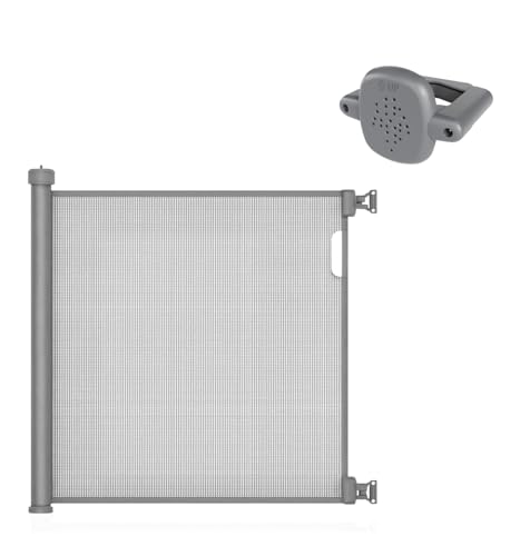 This retractable dog gate is designed to help contain dogs and babies on stairs, in doorways and along hallways. The mesh pulls out when needed and rolls away to keep walkways clear when not in use. A No-Drill Banister Kit is included for screw-free mounting on wooden or metal railings, which suits rented homes and modern staircases.