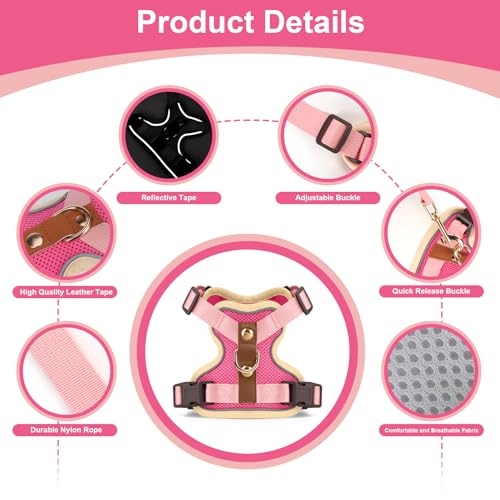Adjustable cat and kitten harness and lead set ideal for walking and controlled outdoor time; breathable mesh and leather-trim design gives a comfortable, escape-resistant fit with reflective edging for added visibility during early morning or evening strolls.