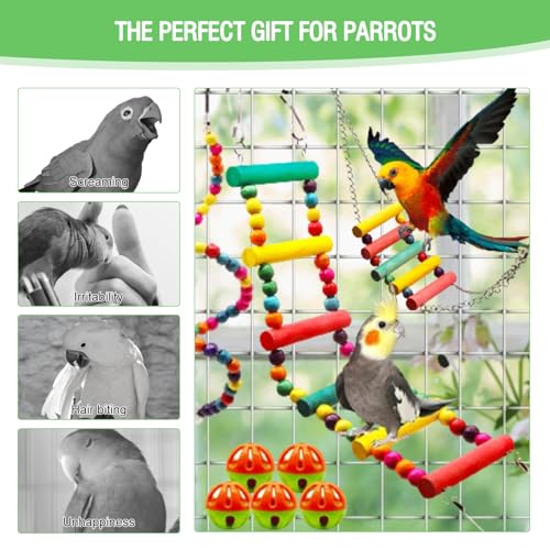 Yes. Bright colours and varied pieces-swings, ladders, shredding perches and bells-encourage climbing, balance and beak activity to reduce boredom and anxiety.