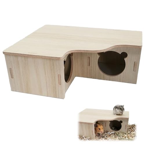 Made from polished natural wood, the house is burr-free and non-toxic so it is safe for chewing and built to last. The connected chambers and tunnels create a compact mini-maze that supports hiding and play, while the removable roof and detachable panels mean you can assemble it without tools and clean or dry parts quickly. The lift-off lid also makes quick health checks possible without disturbing the whole enclosure. This style of hideout suits hamsters, gerbils, mice and similar small rodents and works well placed in a cage corner to maximise usable floor space; if you keep larger species, check that the tunnels and entrances fit your animal before use.