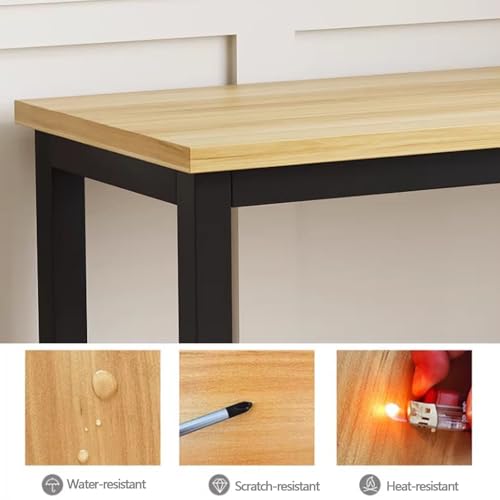 The stand combines a sturdy steel frame with a wooden top for enhanced durability; the wear-resistant metal frame and modern surface provide long-lasting functionality.