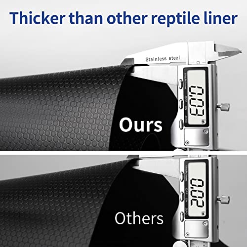 The textured, seamless surface gives reptiles traction and helps reduce slipping and joint strain while remaining non-adhesive and gentle on bellies, paws and claws. The liner does not absorb waste and can be shaken, wiped or rinsed and left to dry, cutting cleaning time. It is thicker than many alternatives, tear resistant and described as food-grade, with some capacity to absorb heat and help maintain humidity within a controlled enclosure.
