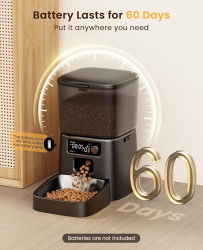 - Dual power options – 5V adapter or 3D-cell batteries (not included) provide reliable feeding even during blackouts.