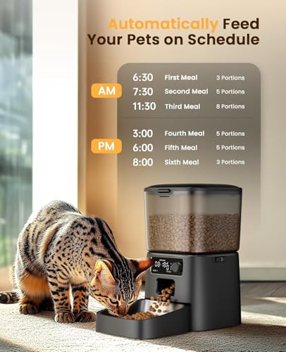 Looking for an automatic cat feeder to keep meal times consistent and control portion sizes while you are at work or away? This timed cat food dispenser serves 1 to 36 portions per meal (about 7g each) and can deliver up to six meals a day, so you can set accurate portions to discourage overeating and keep a steady routine for adult cats. It is also suitable for households with small dogs.