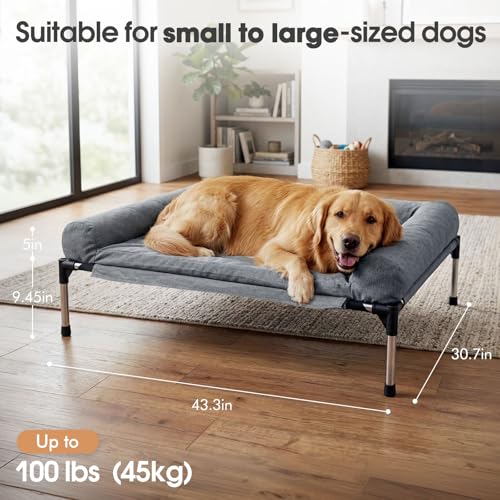 This elevated dog bed and dog couch offers a raised resting spot for small to large dogs, suitable for indoor and outdoor use. The raised platform keeps dogs away from hard or wet ground while encouraging airflow underneath to help them stay cooler in warm weather. It provides a stable, comfortable place for dogs to relax whether placed in a living room, porch or garden.