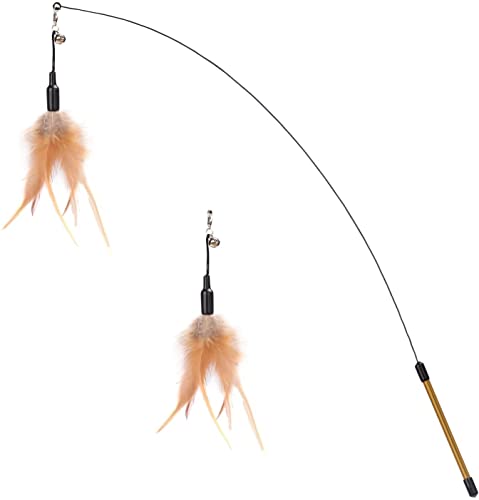A long, flexible wire on the wand lets you move the feathers across a wider area so you can play from a seated position and keep hands safely away from claws. The toy is lightweight and uses non-toxic natural feathers, with one spare feather included to extend playtime. It suits kittens and adult cats that enjoy chasing and pouncing; always supervise play to ensure feathers remain secure and safe.