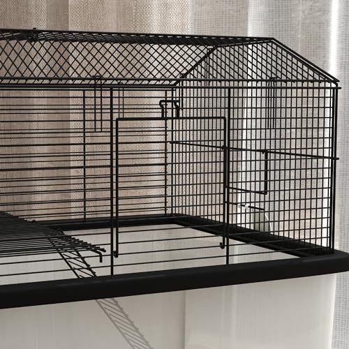 The deep base lets you add a thicker layer of bedding for burrowing and helps contain mess when spot cleaning. The ramp and upper level encourage activity without needing a larger footprint, while close wire spacing helps keep small occupants secure. A 125ml water bottle and food dish are included so the cage is ready to use after assembly, and the four wheels make repositioning simple; move animals before relocating the unit to avoid stress. For Syrian hamsters, consider this as a single-occupant enclosure and provide regular out-of-cage floor time, since tiers increase usable area but do not replace wide ground-level space.