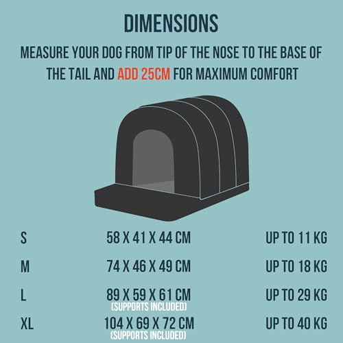Use this bed as a stand-alone shelter in a sheltered outdoor spot or place it inside a standard long crate to convert a kennel into a cosy den. It is particularly well suited to large-breed dogs that favour enclosed spaces, older or post-surgical dogs that need gentle support, and owners who want a low-maintenance, robust resting option that dampens noise and offers privacy.
