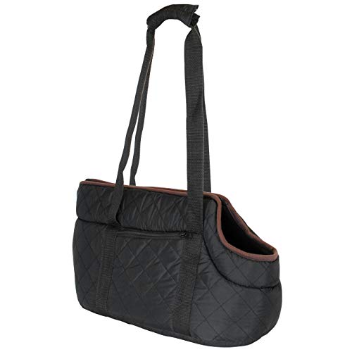 A quilted pet carrier for small dogs, puppies and cats that provides a cosy padded interior for comfortable travel. Zipped top and internal collar clip help keep your pet secure while you carry them in style.