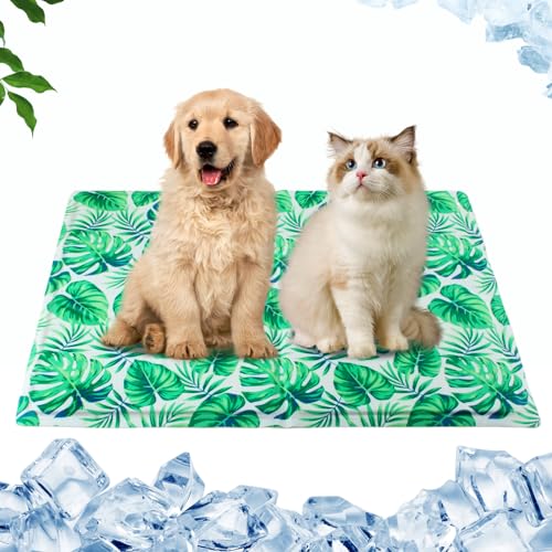 Cooling gel mat for dogs and cats that lowers surface temperature for summer comfort and heat relief, with waterproof, scratch-resistant Oxford cover and foldable design for easy cleaning, transport and use in beds, crates or car.