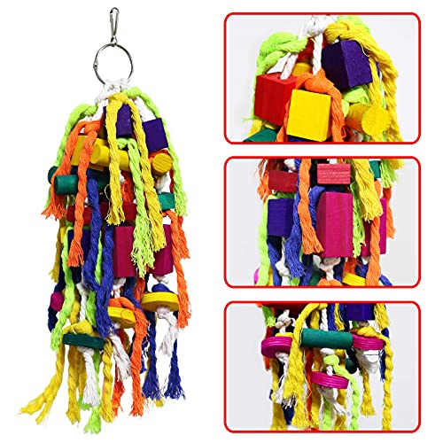 If your parrot is showing boredom, destructive chewing or an overgrown beak, a parrot chew toy can help provide mental stimulation and practical beak maintenance. This chew toy for parrots combines multiple wooden blocks and knotted cotton pieces in bright colours to engage curious birds and encourage natural chewing and dismantling behaviour.