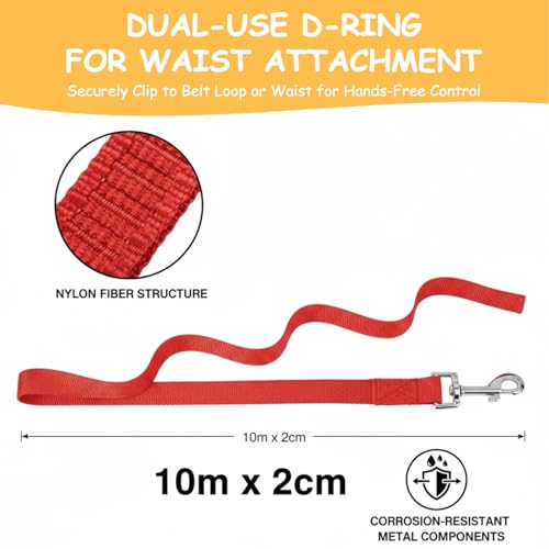 Made from high-strength nylon with a corrosion-resistant metal hook, the lead is durable enough for fields, parks and campsite use. A cushioned D-ring handle reduces hand strain and can be used for secure grip or quick waist attachment. The 360° rotating stainless steel clip helps prevent twisting, and the lead is fully washable and quick-drying for practical use on muddy trails or at the beach.