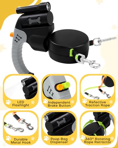 Retractable Dog Lead for Walking Two Dogs