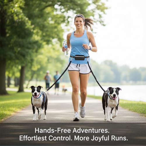 This hands free dog lead combines a double-lead setup with an adjustable waist belt so you can walk or run with two dogs without holding leashes. Designed for medium and large dogs, the system keeps you mobile while maintaining control, making it suitable for daily walks, jogging and outdoor exercise where hands-free handling helps maintain pace and balance.