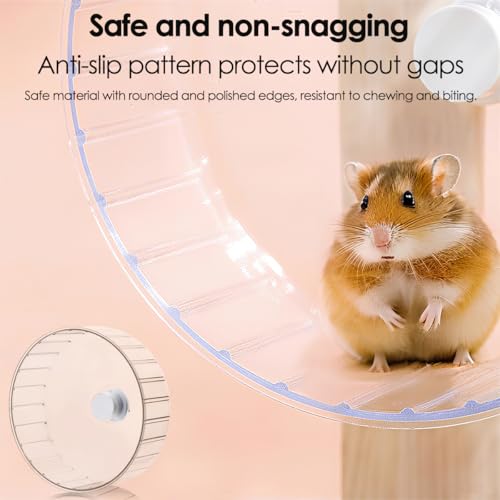 17.5cm silent acrylic exercise wheel for hamsters, gerbils and mice, offering a seamless running surface that protects feet and tail. Quiet dual-ring bearing design and easy-to-clean transparent drum keep small pets active without disturbing nights.