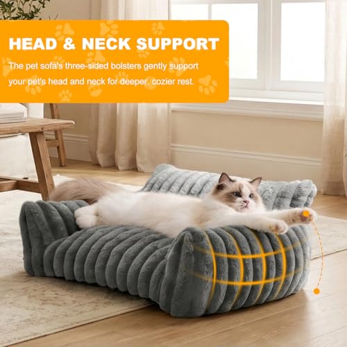 Looking for a cosy indoor cat bed that helps your cat rest and feel secure? This sofa-style cat bed uses a three-sided design to support head and neck, creating a nest-like spot that encourages a comfortable sleeping posture and a sense of security. It is aimed at cats who like to curl up against raised edges or rest with their head slightly elevated.